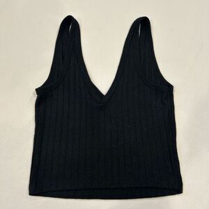Abercrombie & Fitch ribbed knit tank top in classic black. Features a deep V-neckline, soft stretch ribbed fabric, and a flattering slim fit. Perfect for layering, casual wear, or a chic night-out look. Women’s size XS.