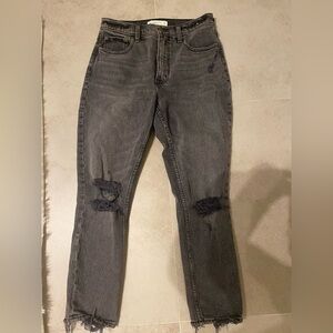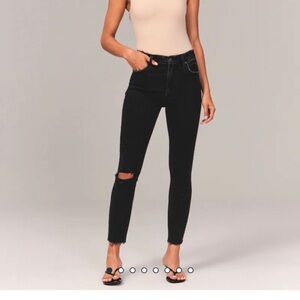 Stylish black skinny jeans. Features a ripped knee design. Perfect for casual wear.