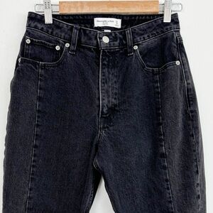 Abercrombie & Fitch Black The Mom High Rise Curve Frayed Hem Jeans Size 27/4