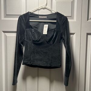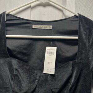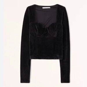 New with tag Abercrombie & Fitch black velvet corset bustier top in size Small. Features a flattering square neckline, structured bustier-style bodice, and long fitted sleeves. Crafted from a soft, stretchy velvet blend of 92% polyester and 8% elastane for comfort and shape retention. Perfect for night outs, holiday parties, or layered under a blazer for a chic, elevated look. Original retail price $70. No flaws.