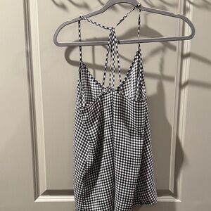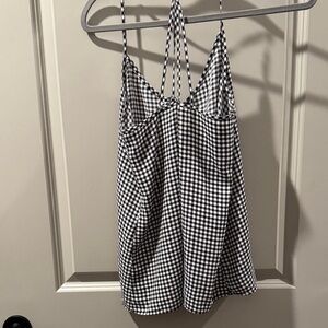 Chic plaid dress with a classic black and white pattern. Ideal for versatile styling.