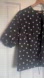 Elegant black blouse with white polka dots. Features puff sleeves and tie back detail. Fast shipping, offers welcomed.