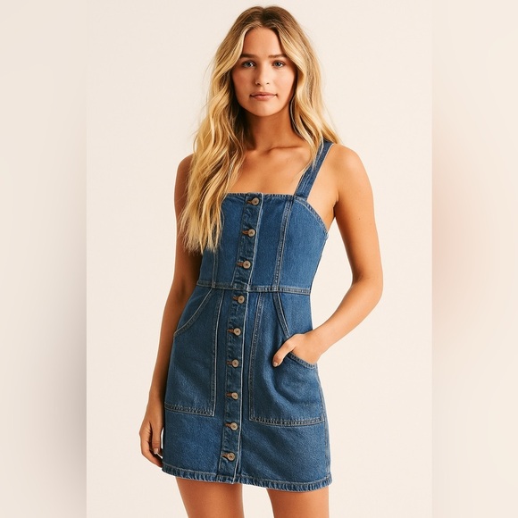 Abercrombie & Fitch Blue Denim Button Front Mini Dress. Size XS. Very stretchy. Functional buttons on the whole front. Adjustable button straps. Unlined. Two front pockets. Excellent condition!