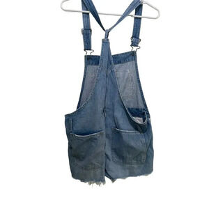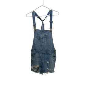 Abercrombie & Fitch Blue Denim Jean Distressed Overalls Shorts Size Small