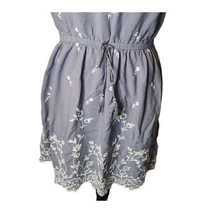 Abercrombie & Fitch Blue Embroidered Peasant Mini Dress. Ties at the waist. Scalloped, cap sleeves. V neck. Cute dress for summer! Excellent condition. Size medium.
