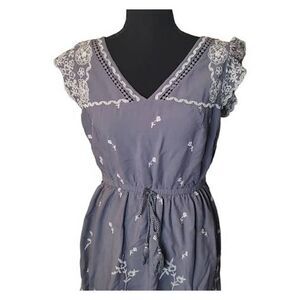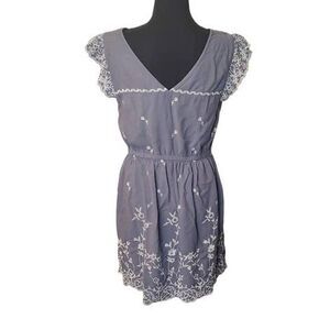 Abercrombie & Fitch Blue Embroidered Peasant Mini Dress Med
