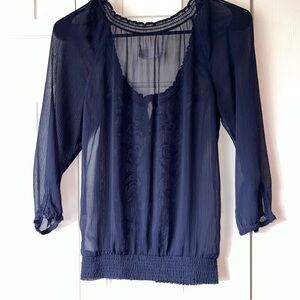 Abercrombie & Fitch Blue Floral Sheer Blouse, 3/4 length Sleeves, Size Small