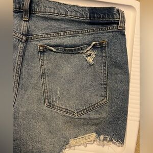 Classic high rise denim shorts. Features frayed edges. Ideal for everyday style. “The MOM short, high rise”