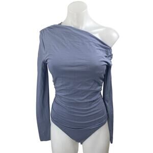 Abercrombie & Fitch Blue One Shoulder Long Sleeve Thong Bodysuit Top Size S