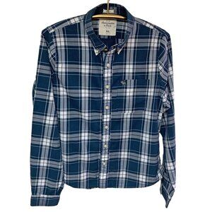 Abercrombie Fitch Blue Plaid Button Down Long Sleeve Muscle Shirt