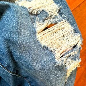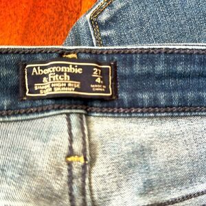 These Abercrombie & Fitch skinny jeans feature a classic blue hue with intentional distressing for a modern, casual vibe. The medium-wash denim offers a comfortable fit with a touch of stretch, making them a versatile addition to any wardrobe.
