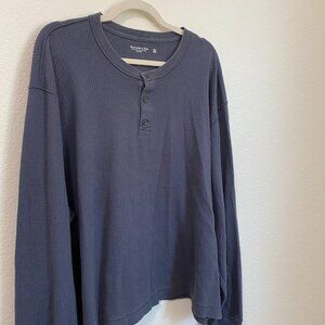Abercrombie & Fitch Blue Soft A&F Cozy Cropped Thermal Henley