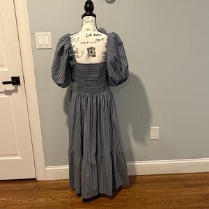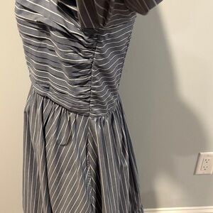Elegant blue striped dress with puff sleeves. Perfect for any occasion. Worn 1 time! Excellent Condition!