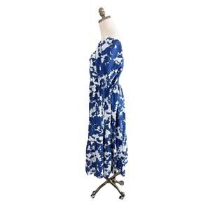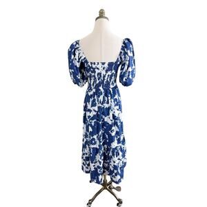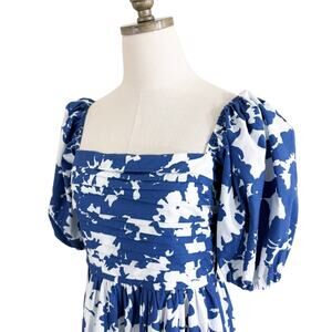 Abercrombie & Fitch Blue & White Floral Print Midi Dress Square Neck Puff Sleeve