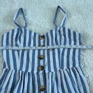 This Abercrombie & Fitch Blue/ White Linen Blend Button Maxi Dress in Women’s Size SP is a stylish and versatile piece perfect for various occasions. The dress features a sweetheart neckline, long length, sleeveless design with strappy sleeves, and button closure. Made from a blend of linen and cotton, it is ideal for summer, fall, and spring seasons. The dress is lined, has smocked accents, and a striped pattern, adding a touch of bohemian, colorful, and classic style to your wardrobe. Easy to care for with machine washable fabric, this dress is a great choice for travel, parties, or casual outings.