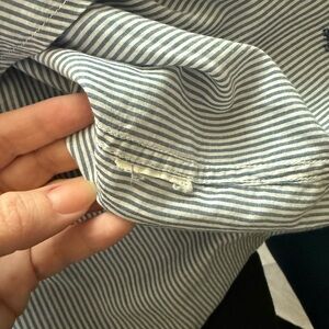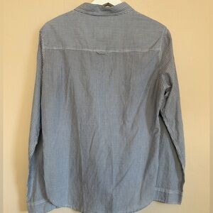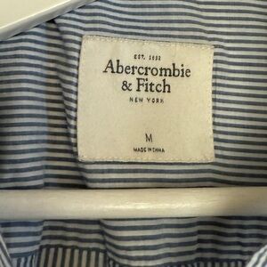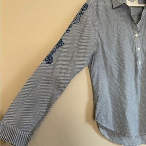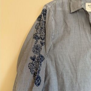 Abercrombie & Fitch Blue White Stripe Popover Embroidered Floral Blouse Top Med