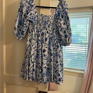 Chic floral dress with puff sleeves. Features a square neckline. Perfect for casual outings. Worn once for engagement pictures. Perfect condition!