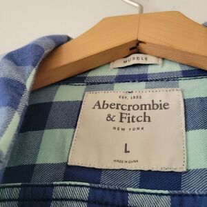 Abercrombie & Fitch Blue Gingham Muscle Button Down Flannel Shirt L
