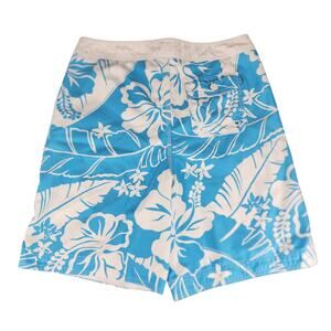 Abercrombie Fitch Board Short sz L Men Hawaiian Hibiscus Tropical Blue White 21"