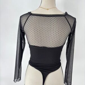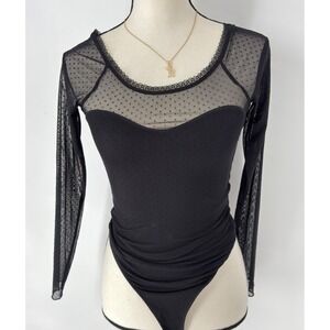 Abercrombie & Fitch Bodysuit XS Black Long Sleeve Mesh Polka Dot Lace Trim
