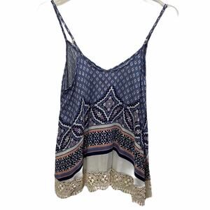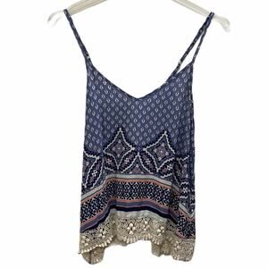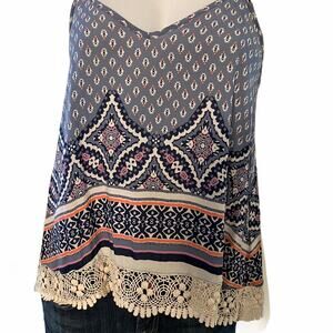 Only worn once or twice. Size small. No rips, tears or stains. Excellent condition. Adjustable spaghetti straps. Paisley-ish pattern with crochet hem detail. Ask any questions!