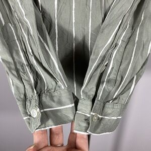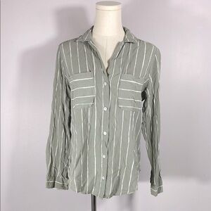 Abercrombie & Fitch Boyfriend Striped Button-Up Shirt Sage green size small