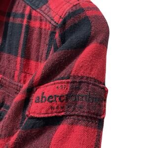 Abercrombie & Fitch Boys Plaid Flannel Fleece Lined Jacket Size XL Red Preppy
