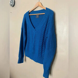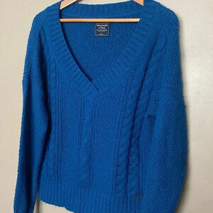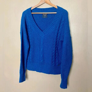 Abercrombie & Fitch Bright Blue V-Neck soft Cable Knit Sweater sz L Y2K EUC