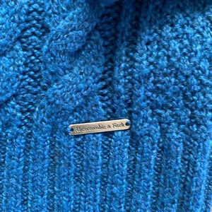 This fun and soft cozy Abercrombie and Fitch sweater is in nice shape. It’s giving Y2K vibes and the bright blue is a great color. Size large. Questions? Leave a comment below!