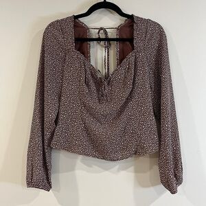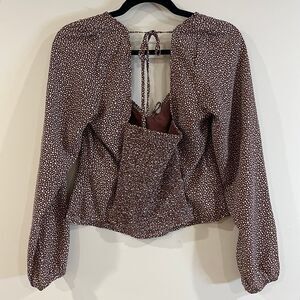 Abercrombie & Fitch Brown Dot Smocked Sweetheart Blouse size Medium