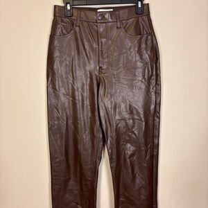 Excellent condition Abercrombie & Fitch Brown The 90's Straight Ultra High Rise Faux Leather Pants