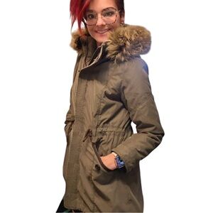 Features A Faux Fur Trimmed Hood, Cozy Sherpa Lining, And Button + Zip Closure For Extra Warmth.