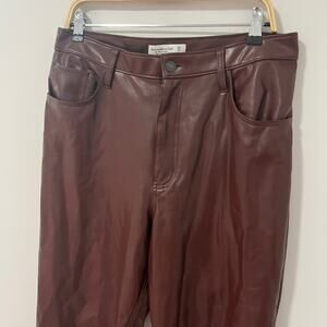 Abercrombie & Fitch Brown Vegan Leather '90s Straight Pants Size 14. Excellent condition, like new. Chocolate brown color. Classic button & zip fly closure. Two front & back pockets. Ultra high rise. Super soft!
