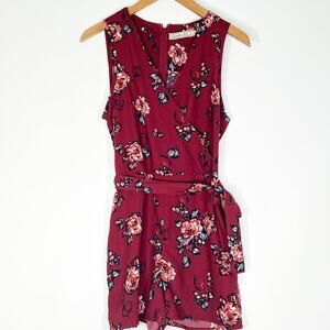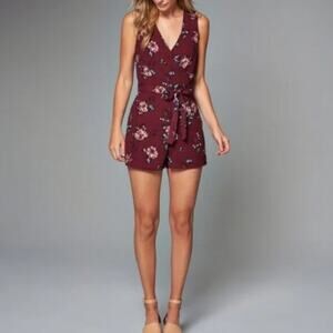 Abercrombie & Fitch Burgundy Floral Print Mini Shorts Romper