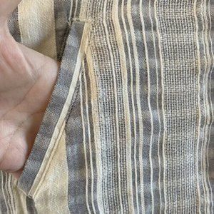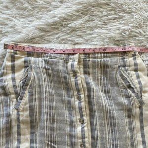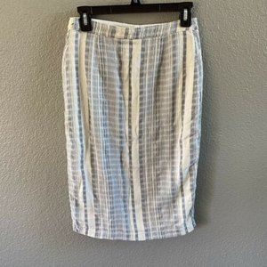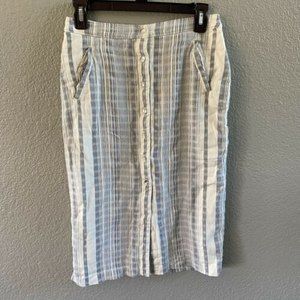 Abercrombie & Fitch Button Down Midi Pencil Skirt Cream Blue Striped linen