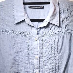 Abercrombie & Fitch Button Up Shirt Womens Size XS Light Blue Eyelet Lace