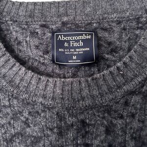 Abercrombie & Fitch Cable Knit Wool Blend Crew Neck Pullover Sweater Gray Medium