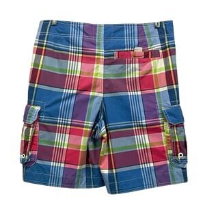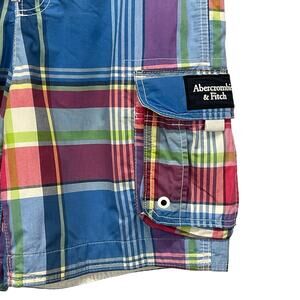 Abercrombie Fitch Cargo Tugger Board Shorts Men's M Multicolor Plaid Swim Trunk