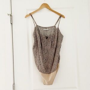 Abercrombie & Fitch Cinched Tie Front Cami Bodysuit Animal Print