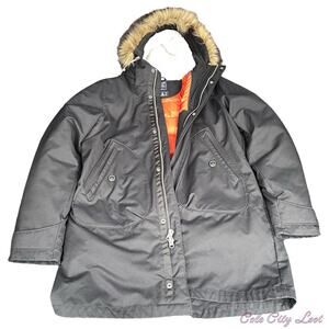 Abercrombie & Fitch Coat M51 Parka Jacket Black Faux Fur Trim Hood Men’s XL