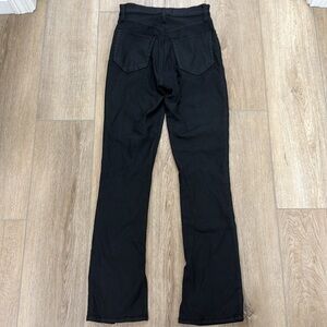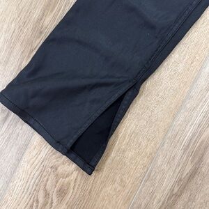 Coated black jeans from Abercrombie and Fitch. Skinny leg fit with kick flare at the bottom with a split hem. Perfect cool girl pants.
