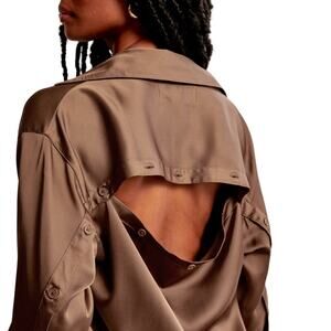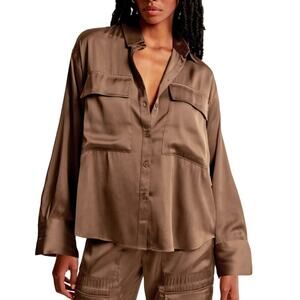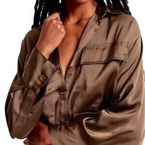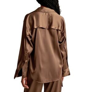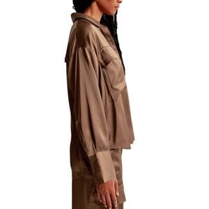 Abercrombie & Fitch Collaboration Oversized Satin Button-Up Mocha Mousse NWT L