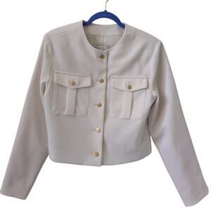 Elegant Cream jacket with gold buttons. Features two front pockets. Blogger Favorite. Chic Old Money Influence
