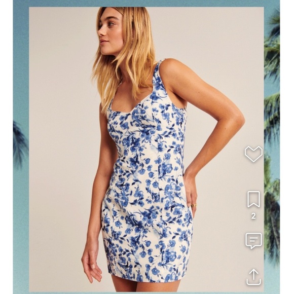 Abercrombie & Fitch Corset Seamed Linen Blend Blue Floral Mini Dress XSP