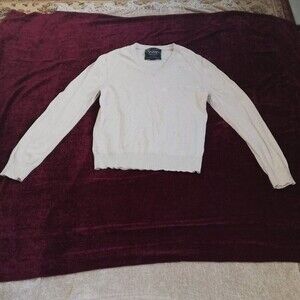 Abercrombie & Fitch Cream Beige V Neck Cotton Sweater Size Large