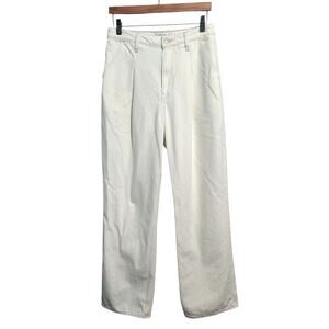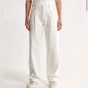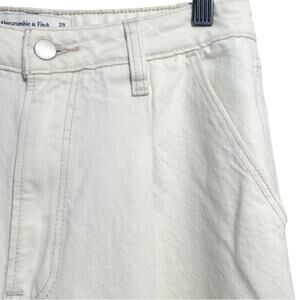 Description: Abercrombie & Fitch Cream High Rise The Loose Fit Curve Love Jean, size 8, excellent condition. Features 78% cotton, 22% Lyocell, pleated front, zipper closure, perfect for casual or stylish wear. Smoke-free home, fast shipping, bundle to save!