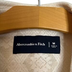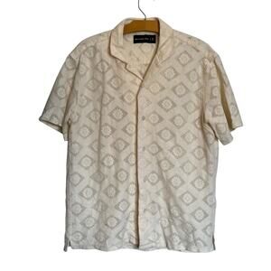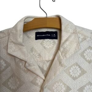 Abercrombie & Fitch Cream Lace Pointelle Knit Camp Collar Button Up Shirt Men's Size Medium