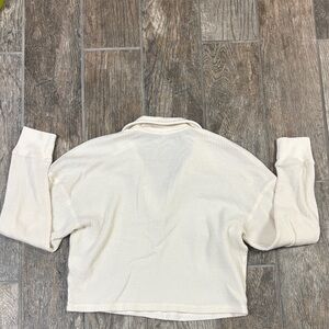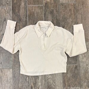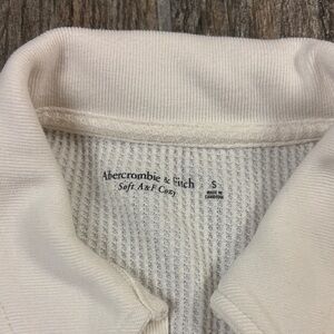 Abercrombie & Fitch Cream Long Sleeve Collared Top Waffle