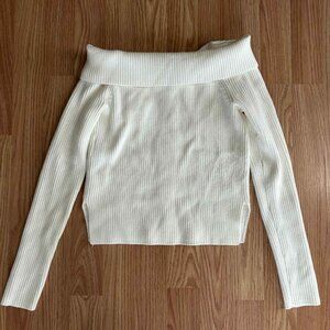 Abercrombie & Fitch Cream Off Shoulder Collar Ribbed Sweater NWT