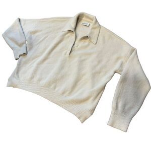 Abercrombie & Fitch Cream Soft A&F Collared V Neck Pullover Light Sweater Polo